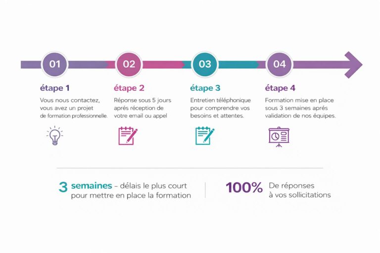 Après validation du devis, la formation pourra être mise en place dans un délais de 3 semaines.
